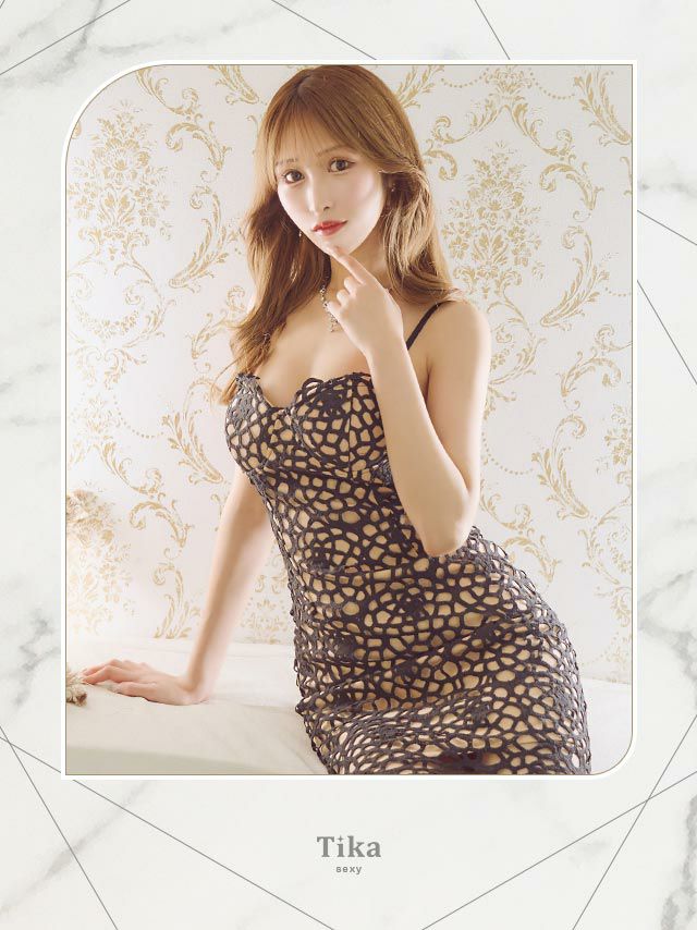 3. [アウトレット] ケミカル総レース風キャミソール膝丈タイトドレス (Sサイズ~Lサイズ) (浦西ひかる/キャバドレス着用) [Tika/ティカ]
