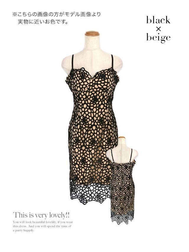 ケミカル総レース風キャミソール膝丈タイトドレスのカラー