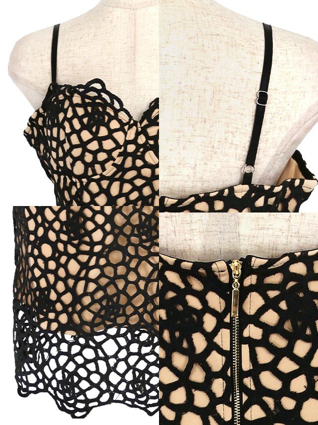 ケミカル総レース風キャミソール膝丈タイトドレスのディティール1枚目