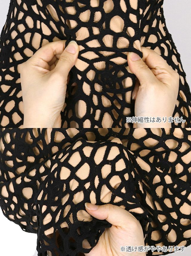 ケミカル総レース風キャミソール膝丈タイトドレスのディティール2枚目