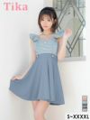 4. 2Way オフショルダー フリル袖 ギンガムチェック柄 ウエストベルト 切り替え フレアミニドレス (Sサイズ~XXXXLサイズ) (伊藤愛依海着用)[Tika/ティカ]