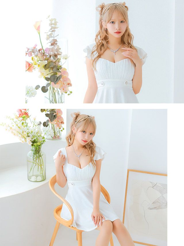 キャバドレス 安い 激安 ミニ丈 キャバクラ クラブ ラウンジ ノースリーブ フリル袖 バスト ギャザー ハイウエスト切替 フレア ミニ ドレス プチプラドレス