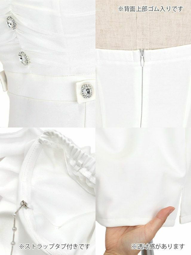 タイトミニドレス谷間ストレッチ肩出し二の腕カバーシアーオフショルダーハートカットサイドウエストベルトのディティール2枚目