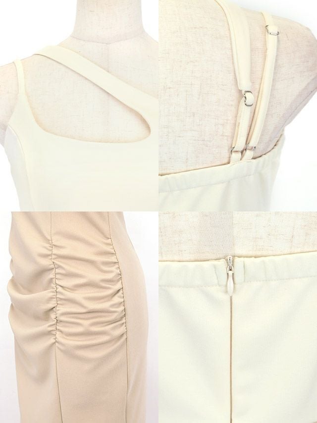 キャバドレス ミニ丈 キャバクラ クラブ ラウンジ ワンショルダー カットアウト バイカラー ギャザー タイトミニドレス