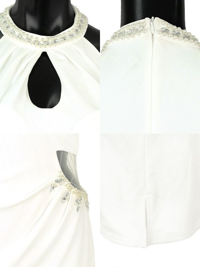 ホルターネックビジュー付きウエストシアーギャザータイトミニドレスのカラー