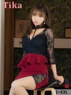 3. [アウトレット] タイト ミニドレス 谷間 大きいサイズ ブラックレース ストレッチ 袖あり 七分袖 ペプラム チョーカー バイカラー (着用) [Tika/ティカ]