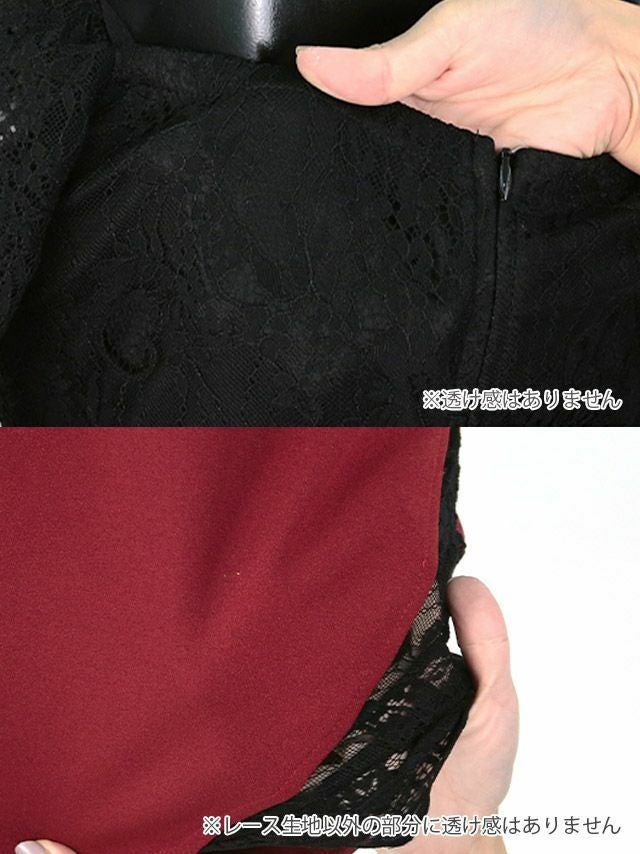 4. [アウトレット] タイト ミニドレス 谷間 大きいサイズ ブラックレース ストレッチ 袖あり 七分袖 ペプラム チョーカー バイカラー (着用) [Tika/ティカ]