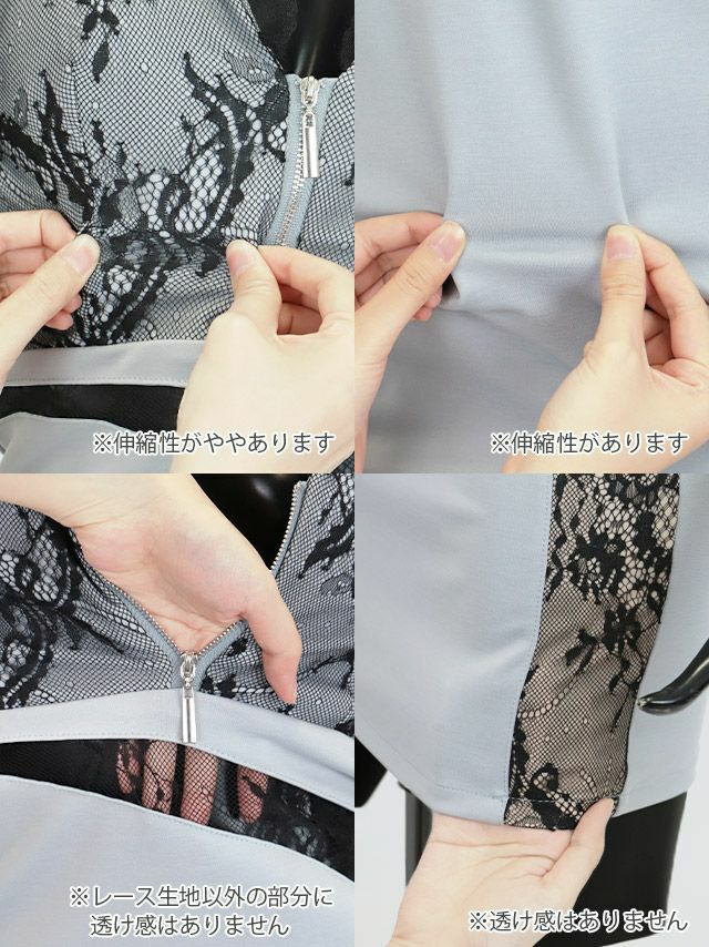 肩あきフロントジップブラックレース切替タイトミニドレスのディティール2枚目