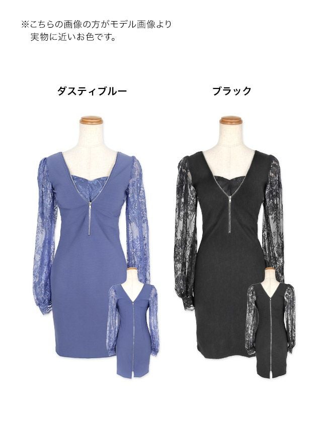 長袖レーススリーブ切り替えストレッチジップタイトミニドレスのカラー