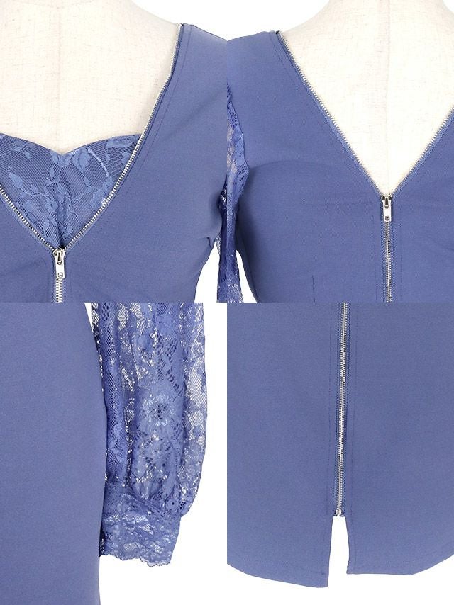 長袖レーススリーブ切り替えストレッチジップタイトミニドレスのディティール1枚目