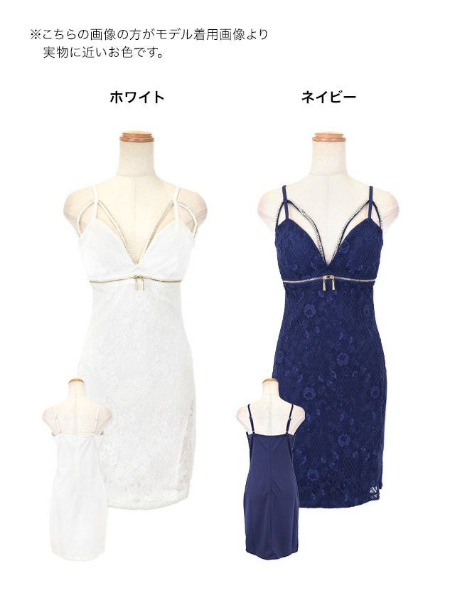 キャバドレス ミニ丈 キャバクラ クラブ ラウンジ キャミソール ビジュー 総レース ジップ タイト ミニドレス