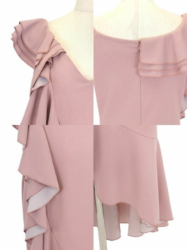 ノースリーブVネックフリル袖マーメイドテール膝丈ドレス