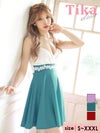 3. キャミソールカシュクールネック刺繍レースハイウエスト切替フレアミニドレス (Sサイズ~XXXLサイズ) (ゆんころ/キャバドレス着用)