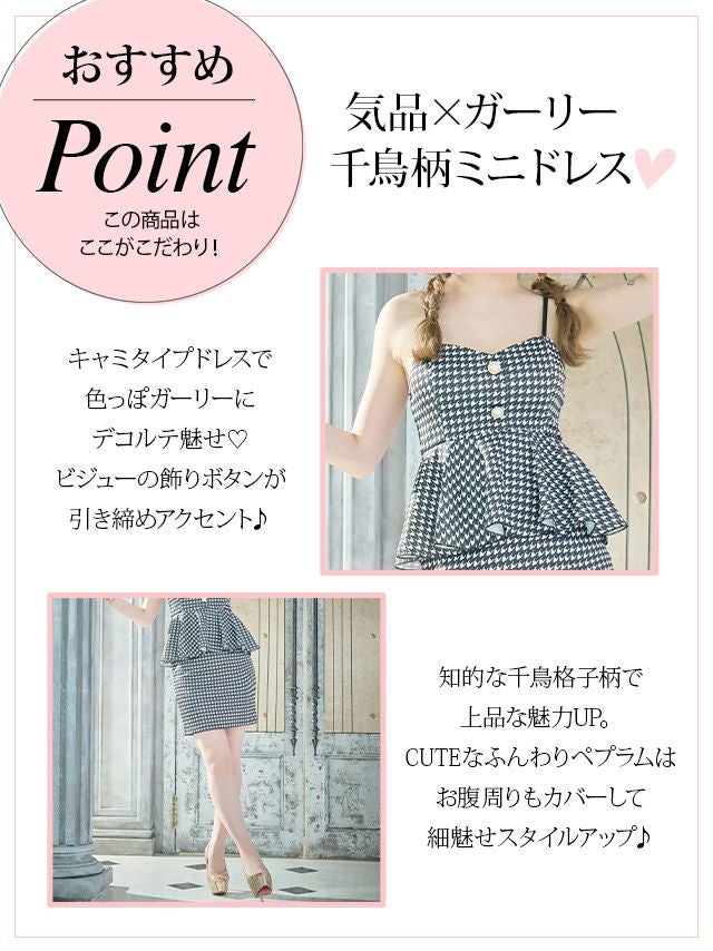 千鳥格子柄キャミソールペプラムタイトミニドレスの商品特徴