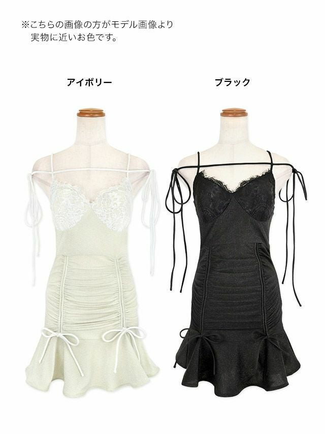 キャミソールコードレース谷間見せドロストリボン裾フリルラメタイトミニドレスのカラー