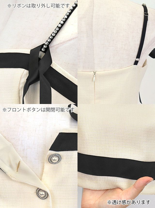 4. ミニドレス リボン フレンチガーリー ツイード ワンピース キャミソール パイピング Aライン XL キャバドレス (若林萌々着用) [tk-mdjj94456] [Tika/ティカ]