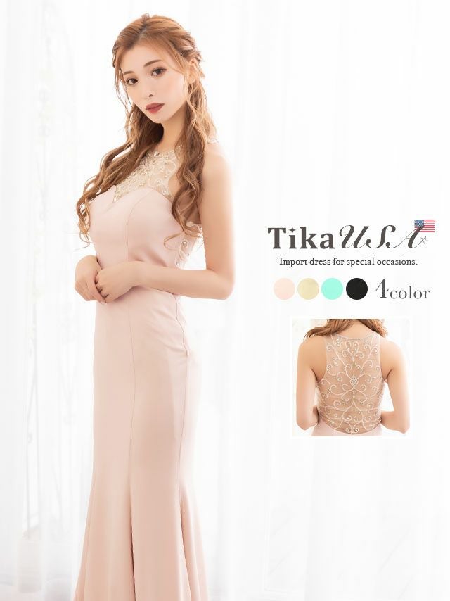 バックシースルーデザインマーメイドロングドレスのカラーバリエーション