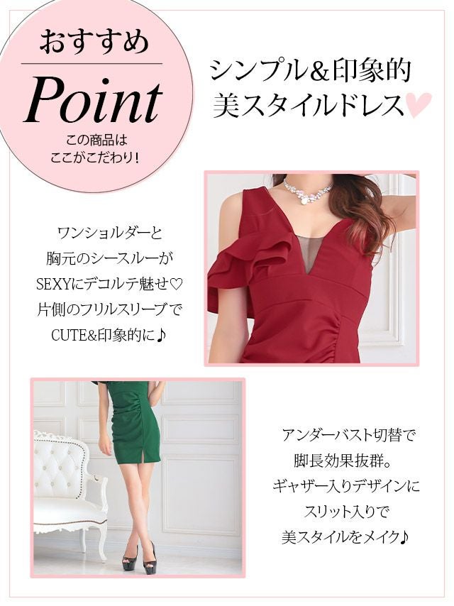 [SALE]ワンショルダーフリル袖胸元シースループチプラタイトミニドレス (Mサイズ)(中尾みほ/キャバドレス着用)[myMinette/マイミネット]