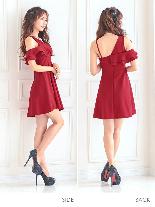 5. [SALE]Vネックシアーアシンメトリーワンショルダープチプラフレアミニドレス (Mサイズ)(中尾みほ/キャバドレス着用)[myMinette/マイミネット]