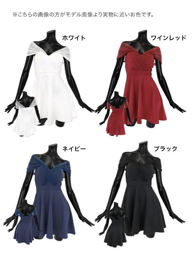 3. [アウトレット] ワンカラーシアースリーブ切替半袖フレアミニドレス (Sサイズ~Lサイズ) (せいせい/キャバドレス着用)