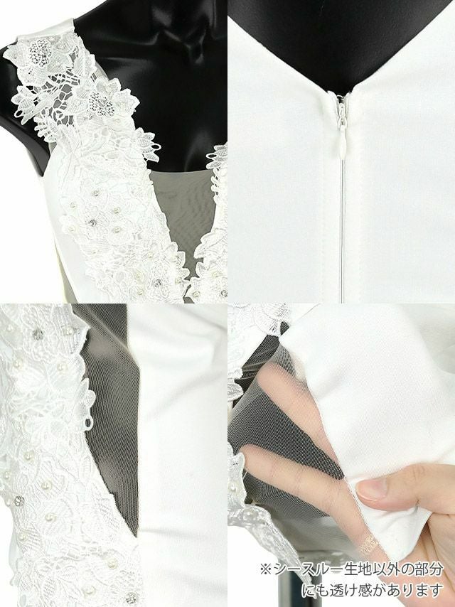 キャバドレス ミニ丈 キャバクラ クラブ ラウンジ パールビジュー付き ノースリーブ くびれ バストシースルー 谷間魅せ タイトミニドレス