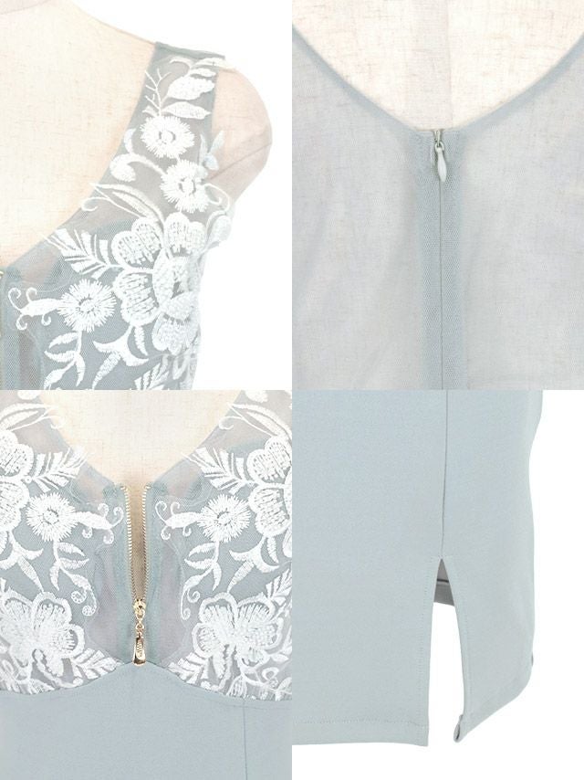 ノースリーブバストジップシースルーフラワー刺繍切り替えストレッチサイドスリットタイトミニドレスのディティール2枚目