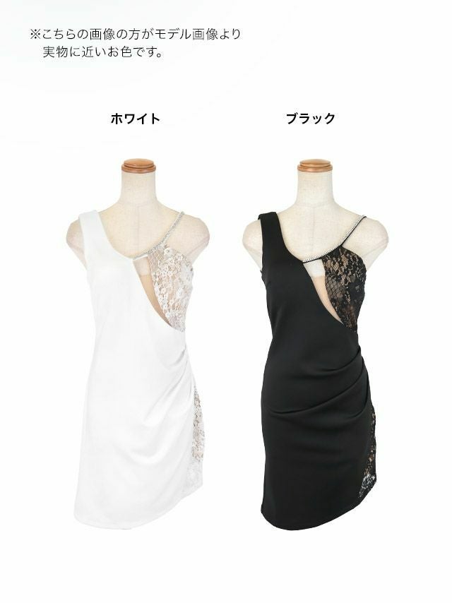 バストカットヌーディーカラーレース切り替えワンショルダー風アシメギャザー谷間魅せストレッチタイトミニドレスのカラー