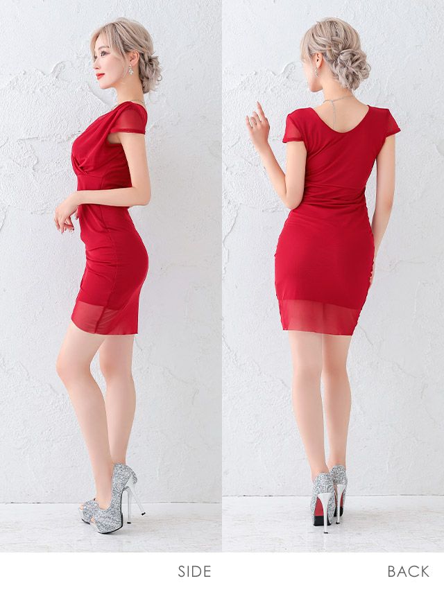 4. [SALE][再入荷] ミニドレス ワンカラー 半袖 裾ラップ プチプラ タイト キャバドレス (せいせい着用)[th-md3229]