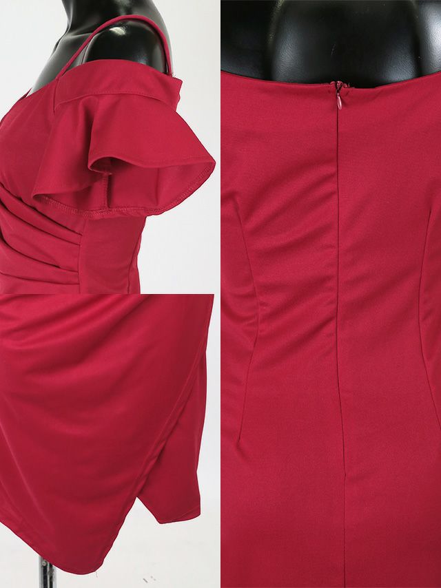 キャバドレス 安い 激安 ミニ丈 キャバクラ クラブ ラウンジ オフショルダー ストラップ フリル サイドギャザー プチプラ 膝丈ドレス プチプラドレス