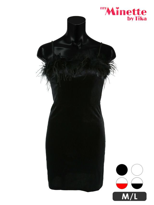 4. [SALE]ベロアキャミソールハートカットファー付きプチプラタイトミニドレス (Mサイズ/Lサイズ)(綾野あすか/キャバドレス着用)[myMinette/マイミネット]