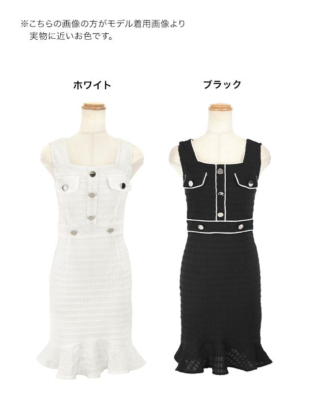 ノースリーブワッフルゴールドボタンワンカラー裾フリルタイトミニドレスのカラー