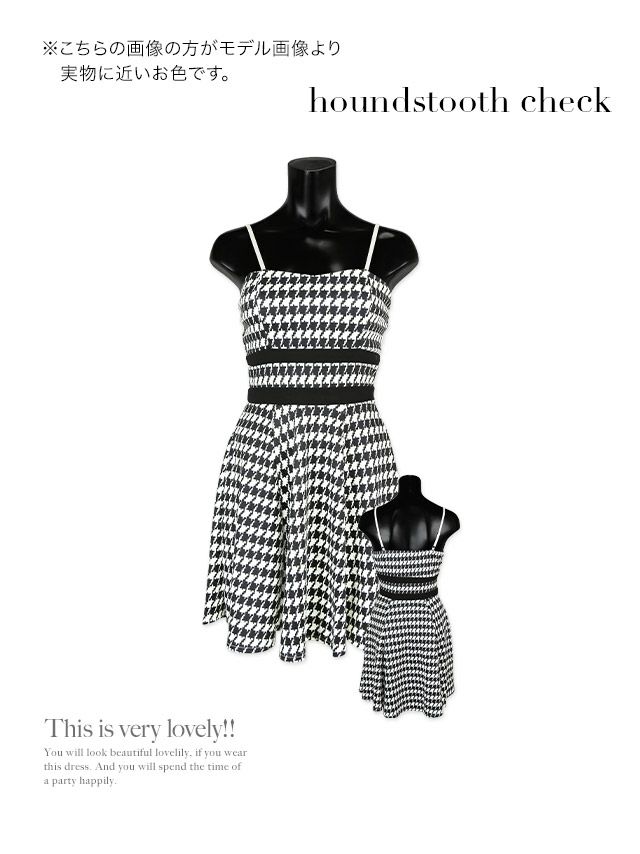 キャバドレス 安い 激安 ミニ丈 キャバクラ クラブ ラウンジ キャミソール 千鳥格子柄 ハイウエスト切替 フレア ミニ ドレス プチプラドレス