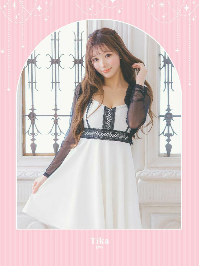 程よい肌見せとガーリーな1着♪ キャミソール刺繍レース切り替えフレアミニドレス (Sサイズ~XXXXLサイズ) (浦西ひかる/キャバドレス着用) [Tika/ティカ]