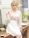 [韓国ドレス] フラワーレースガーリースタイル長袖フレアミニドレス (Sサイズ~Lサイズ) (戦慄かなの/キャバドレス着用)