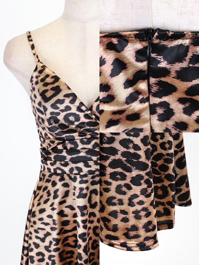 4. [SALE]キャミソールレオパードプチプラバストクロスハイウエスト切替フレアミニドレス (S~XLサイズ)(今井アンジェリカ/キャバドレス着用)[myMinette/マイミネット]