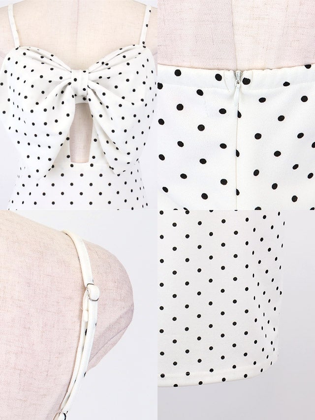 ミニドレス プチプラ ギャル タイト セクシー キャミソール ドット柄 低身長 谷間 背中魅せ リボン ガーリー 黒 キャバドレスディティール1