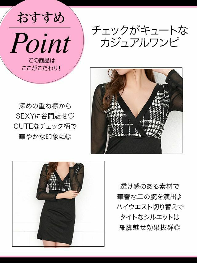 Vネックの胸元がセクシーなミニタイトワンピ♪