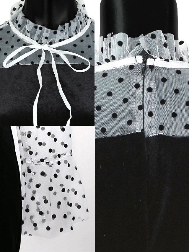 長袖ドットチュールミニ丈タイトワンピースドレス商品詳細2