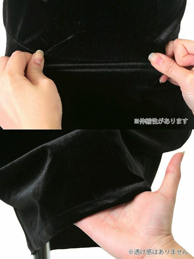 胸元で切り替わっているベロア素材のタイトなスカート部分が