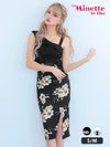 [SALE]大柄フラワーフリルワンショルダーバイカラータイトプチプラ膝丈ドレス (Sサイズ/Mサイズ)(向葵まる/キャバドレス着用)[myMinette/マイミネット]