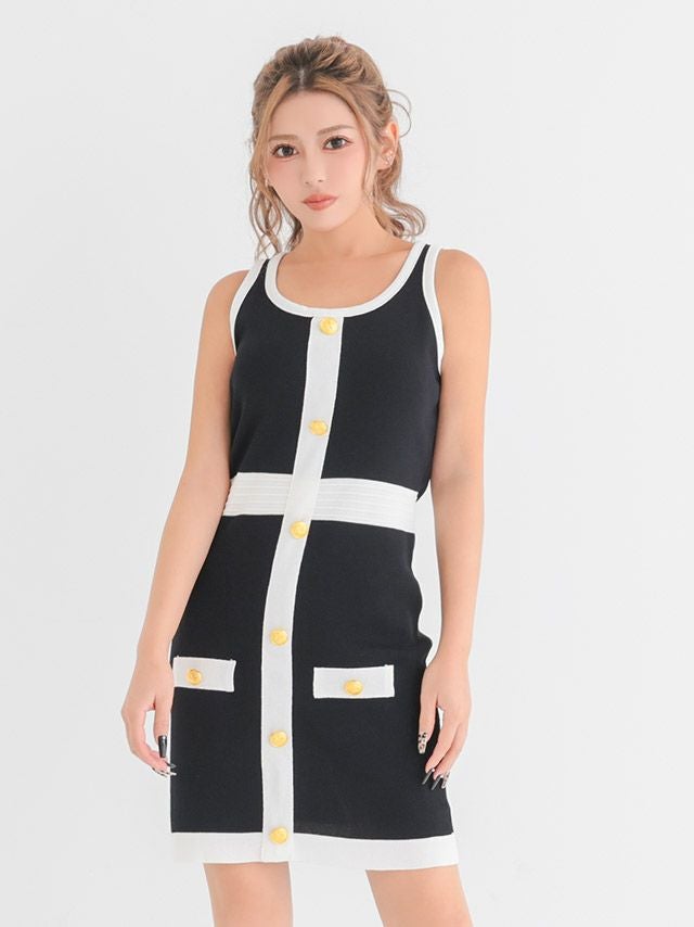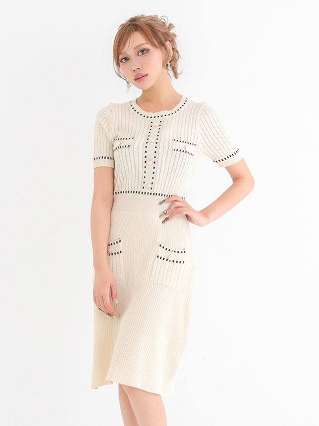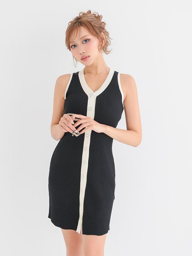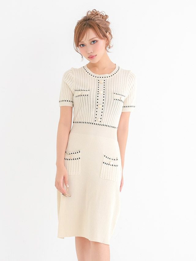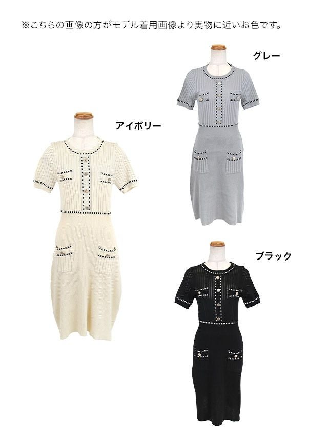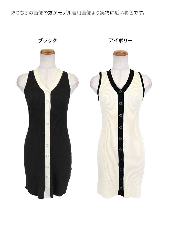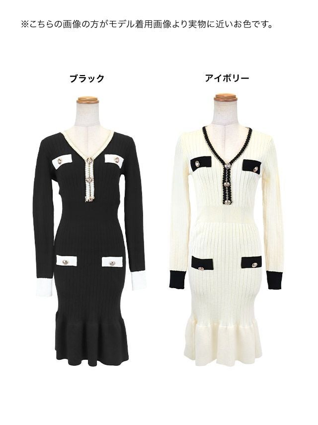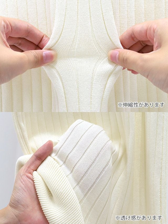リブニットワンピースドレス。