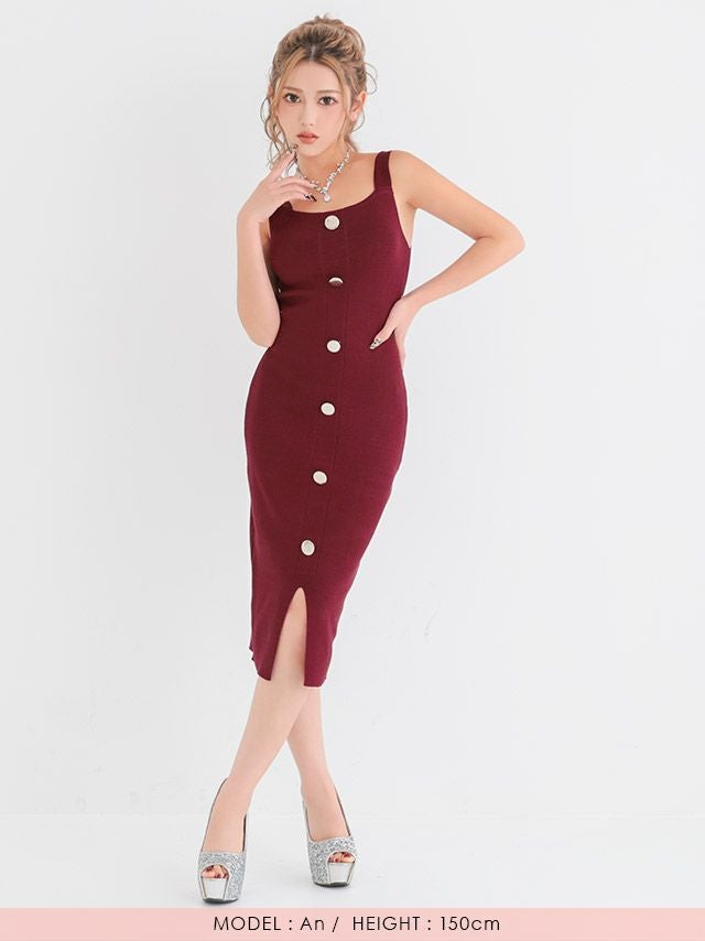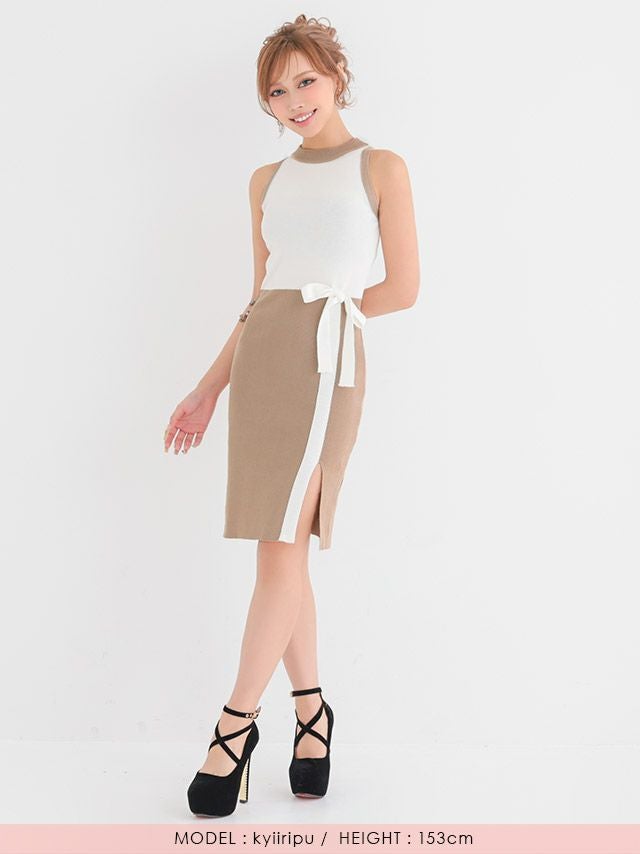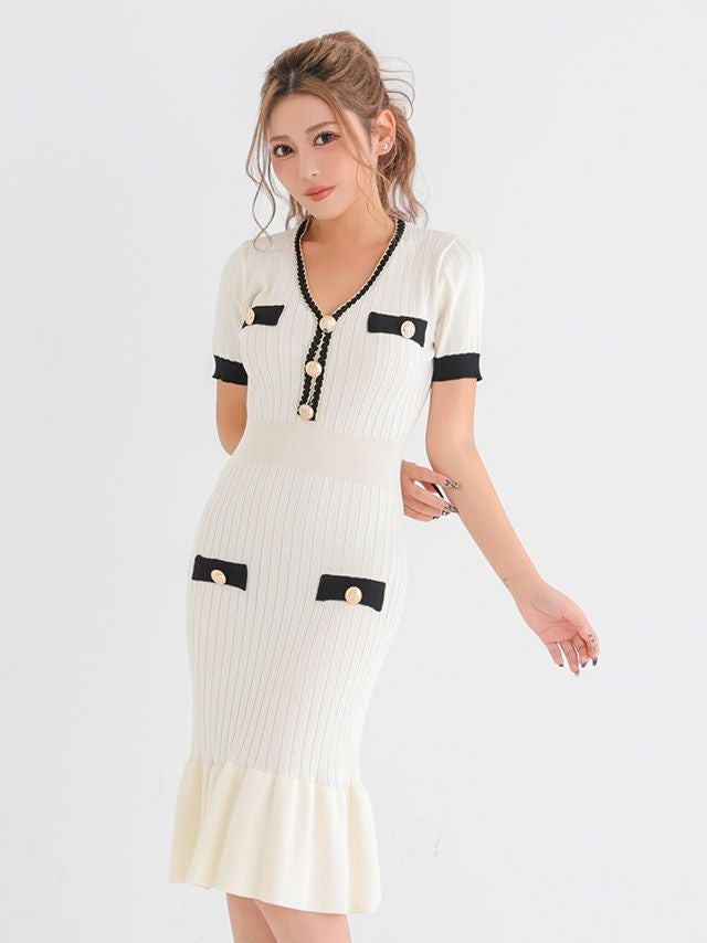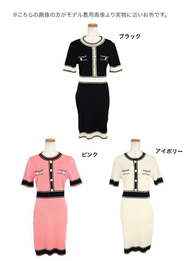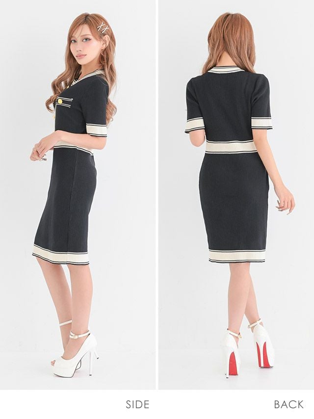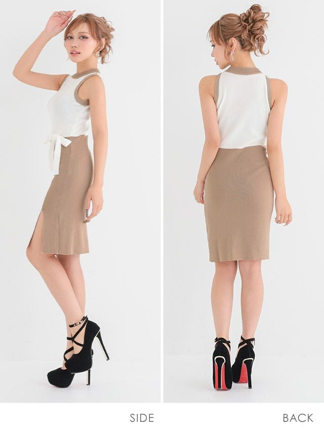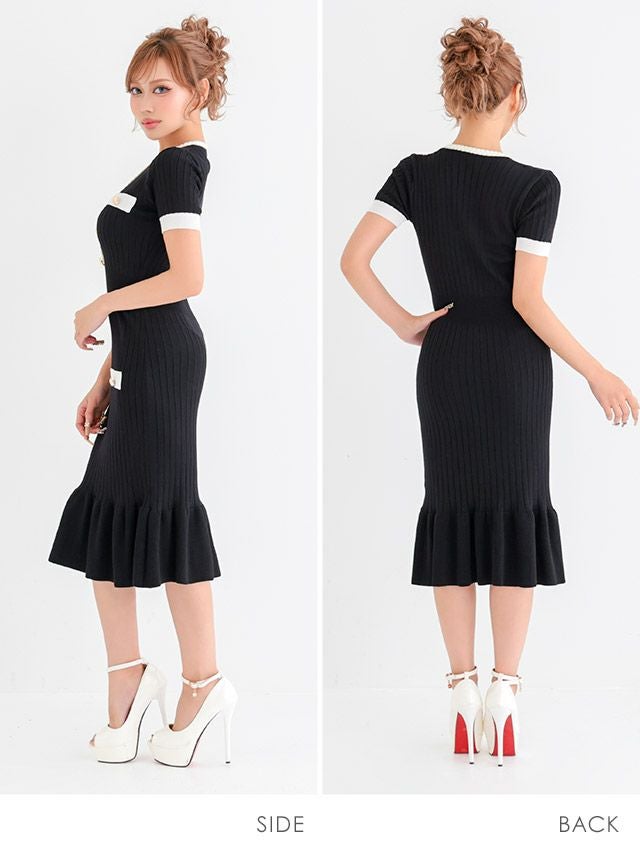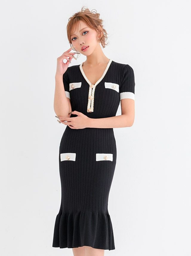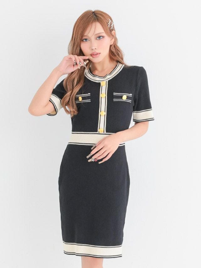 膝丈リブニットドレス
