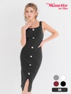 3. [新作] 膝丈ドレス ノースリーブ フロントボタン リブニット スリット セクシー キャバドレス (あん着用)[th-mdtc911b]