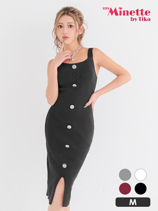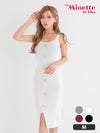 フロントボタン キャミソール スリット リブニット セクシー 膝丈 ドレス