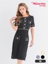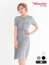 [新作] 膝丈ドレス プチプラ 新人 タイト ニット ラウンジ 半袖 胸元隠し 同伴 アイボリー ゴールドボタン キャバドレス (きぃぃりぷ着用/Mサイズ対応) | myMinette/マイミネット