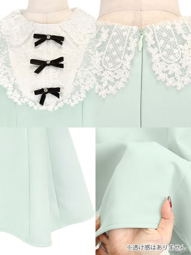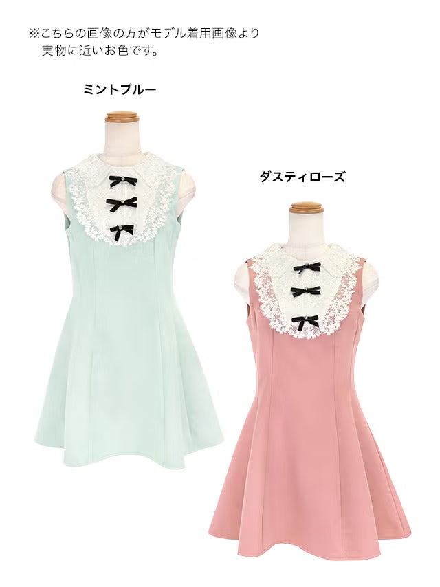 ミニドレス ノースリーブ Aライン レース 襟付き リボン 同伴 胸元カバー 下着のまま ピンク XL キャバドレス のカラーバリエーション画像