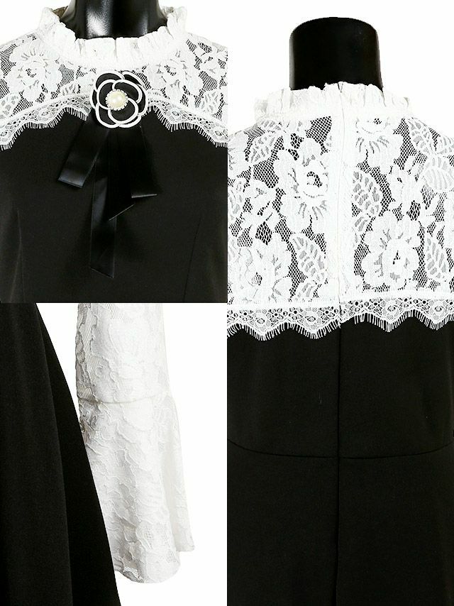 お花モチーフブローチ付きレース長袖Aラインフレアミニドレスサイズ表