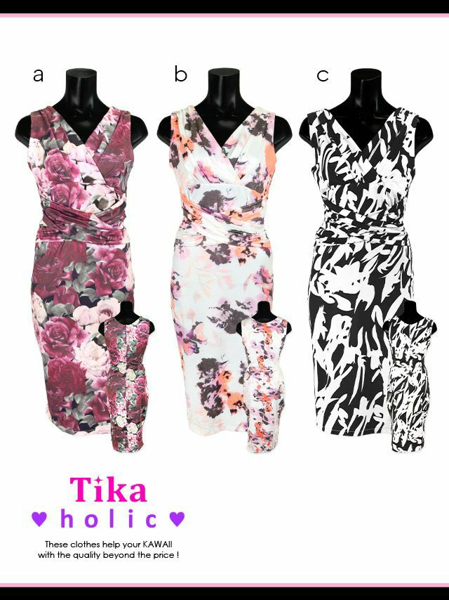 キャバドレス 安い 激安 ミニ丈 キャバクラ クラブ ラウンジ ノースリーブ ギャザー入り 薔薇プリント タイト ミニドレス プチプラドレス