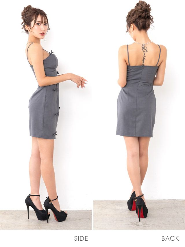 キャミソールバストハートカットリボンデザインタイトミニドレスのサイドバック