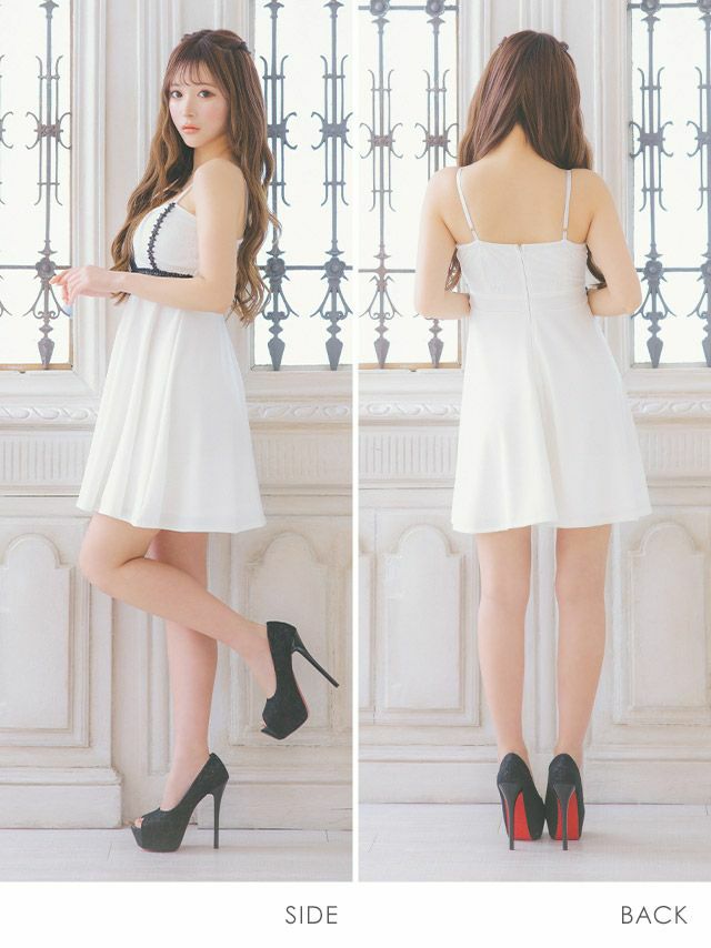 女の子らしい美シルエットをメイク♪ キャミソールブラック刺繍レース切替フレアミニドレス (Sサイズ~XXXXLサイズ) (浦西ひかる/キャバドレス着用) [Tika/ティカ]